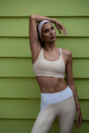 El legging Calm Mint destaca por su tono verde menta luminoso y su diseño estilizado que realza la silueta. La pretina alta proporciona un ajuste firme y cómodo, mientras que la textura acanalada acompaña el movimiento del cuerpo con naturalidad.
