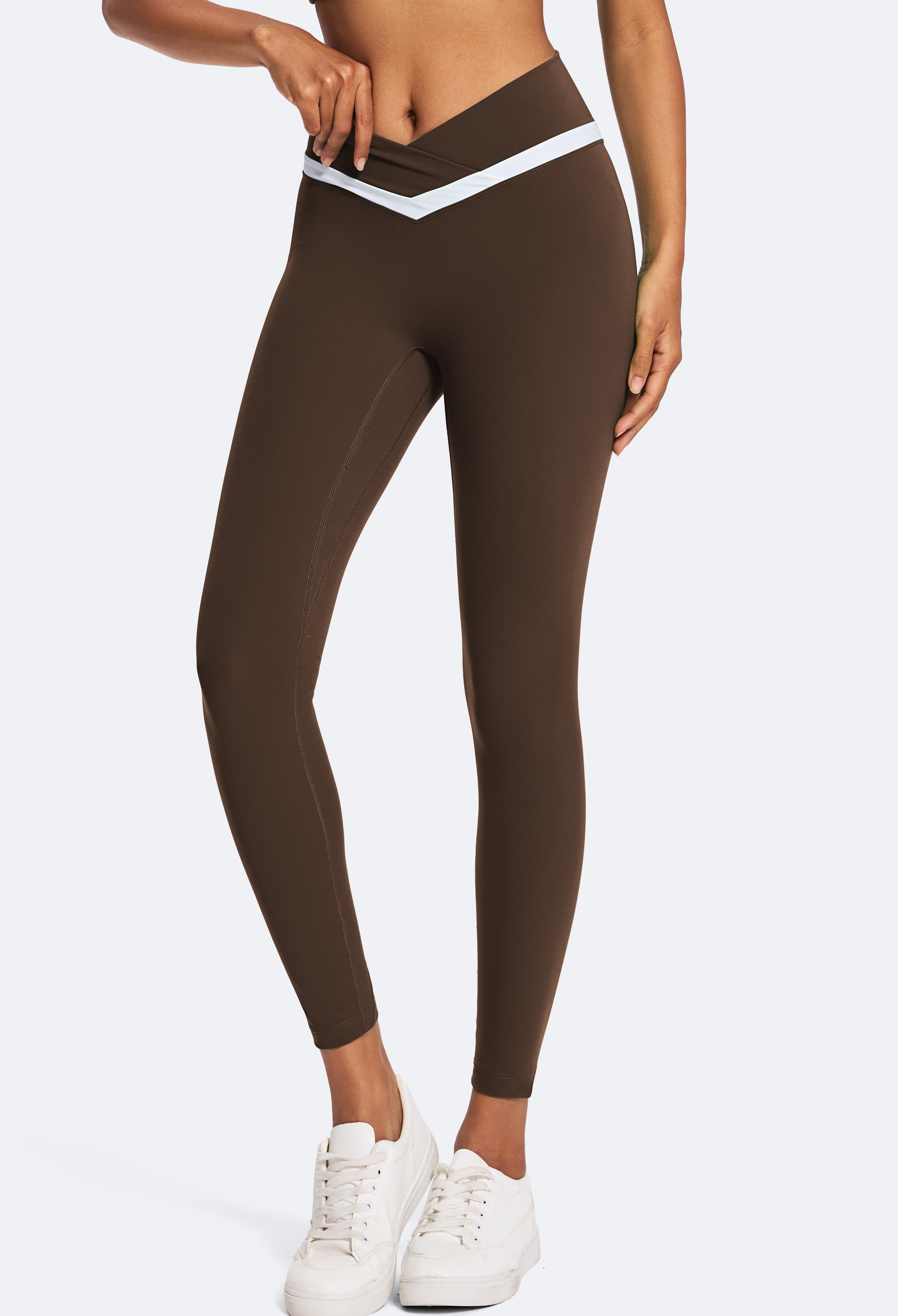 Leggings de tiro alto con pretina en V que estiliza la cintura y realza la figura. El contraste en blanco acentúa la estructura del diseño, aportando definición y un look moderno. Tejido suave, compresivo y flexible que se adapta al cuerpo sin limitar el movimiento.