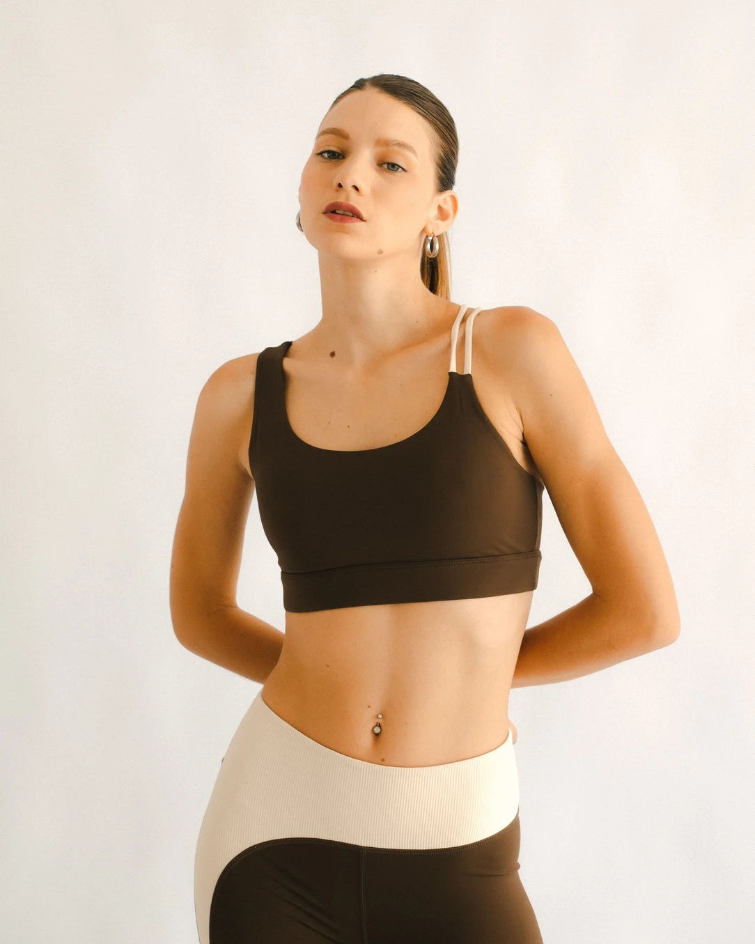 El Set Deep Cocoa combina estilo y rendimiento en un diseño moderno, realza tu figura y añade un toque único con detalles en contraste, perfecto para tus entrenamientos y para tus momentos casuales.